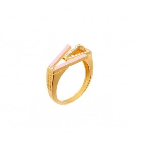 Valentina Ferragni Studio Anello Valentina Ferragni Studio della collezione Mia in argento 925 con placcatura in oro 24 kt, smalto rosa e pietre zirconi bianchi. Misura smallArticolo spedito con astuccio originale e garanzia Valentina Ferragni