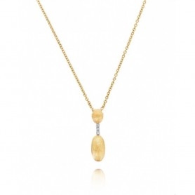 La delicatezza dell'eleganza incontra il talento in questa collana luminosa che ai diamanti sposa due boules in oro 18 kt incise a mano dai nostri artigiani.