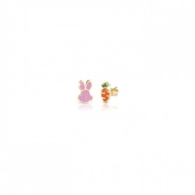 Orecchini al lobo in Oro Giallo 9 Kt con Coniglietto e Carota smaltati.