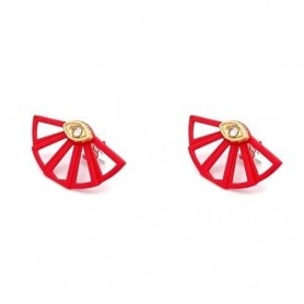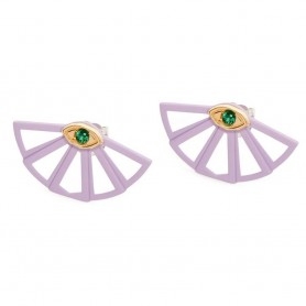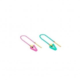 Orecchini a lobo in oro giallo 9 kt con bambina e smalto rosa.
