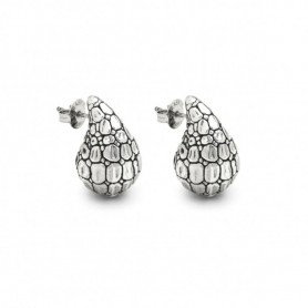 Con questi orecchini d'argento di grande eleganza e leggerezza, Giovanni Raspini esplora il tema della goccia, decorata con la texture di serpente. Eleganti e versatili, sono realizzati completamente a mano in azienda.