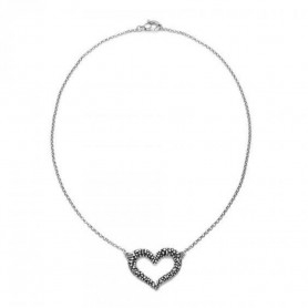 Un decoro in forma di cuore, ispirato al tema Perlage, rende unica questa collana dedicata all'amore. Realizzata in argento brunito e corredata di una catena, sempre in argento, di 45 centimetri. Fatta a mano.