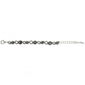 Tutto il fascino dei colori dell'alba su isole lontane è racchiuso in questo bracciale della Collezione Maui. Riflessi cangianti rosa e verdi, grigi e cilestrini risplendono grazie all'effetto chiaroscurale donato dall'argento brunito. Eleganza minimal e cura dei dettagli per un gioiello adatto a molteplici occasioni.