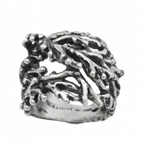 I contrasti luminosi dell'argento brunito trasformano questo anello della collezione Coral in un meraviglioso gioiello contemporaneo. Una creazione nata dal mare per affascinare una donna sofisticata e decisa. Fatto completamente a mano, in house, l'anello racconta tutta la tecnica artigiana del marchio Giovanni Raspini