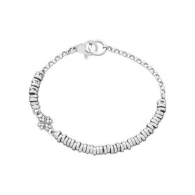 Giovanni Raspini sceglie una catena in argento martellato ad intreccio torchon, e la trasforma in un bracciale raffinato e di grande impatto. L'effetto martellato amplifica la rifrazione della luce, valorizzando l'elegante texture realizzata a mano in azienda.
